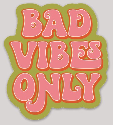 Our “Bad Vibes Only” sticker is here to disrupt your peace—in the cutest way possible. With retro lettering and clashing colors, it’s giving sarcasm, sass, and a little side-eye.
