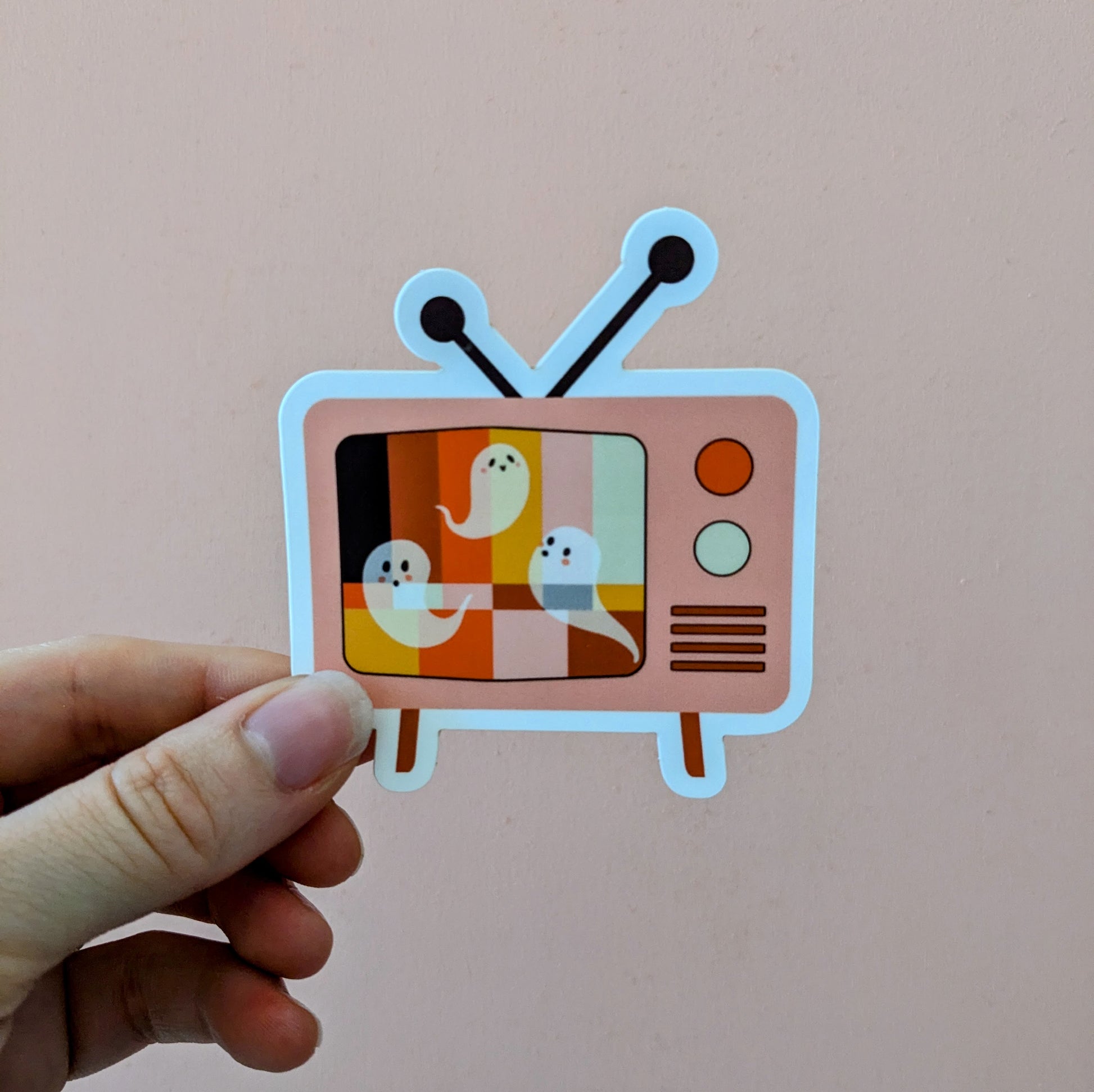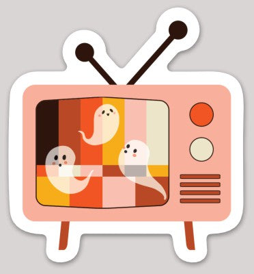 Bring a flicker of the otherworld into your world with our GhostTube Sticker! This retro TV screen hums with eerie charm as three ghostly figures drift across distorted, vintage-colored static. Are they cute, or are they trying to reach you from beyond?
